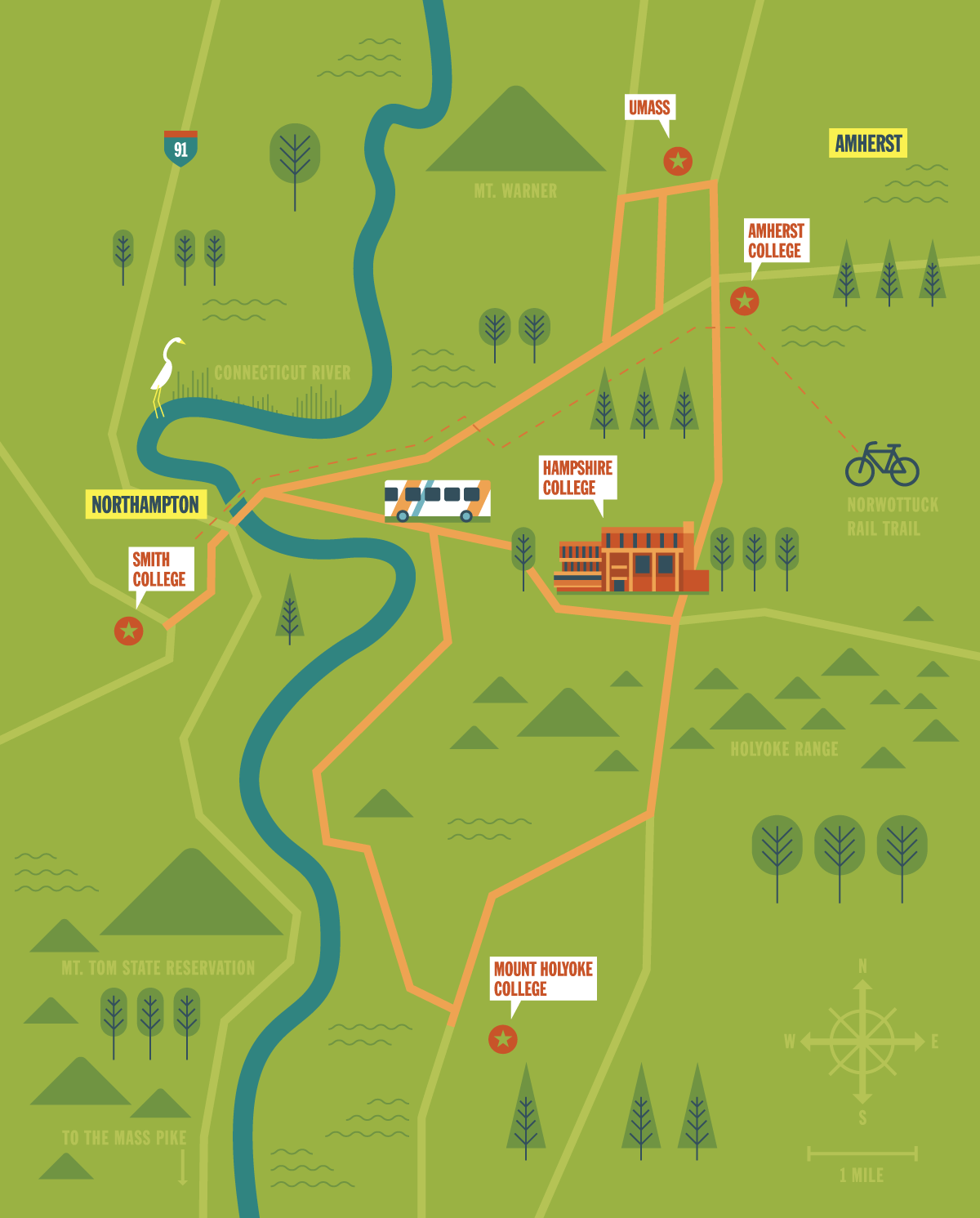 Illustrated Map of Hampshire, Holyoke, Smith, Amherst Colleges