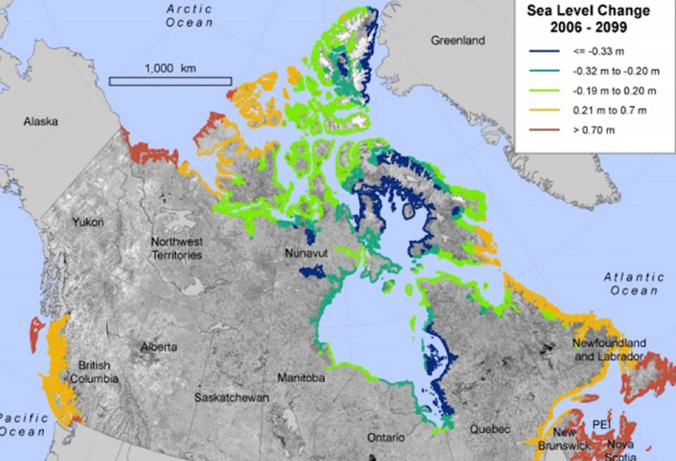 Mapping of Canadian coasts showing where climate change to hit