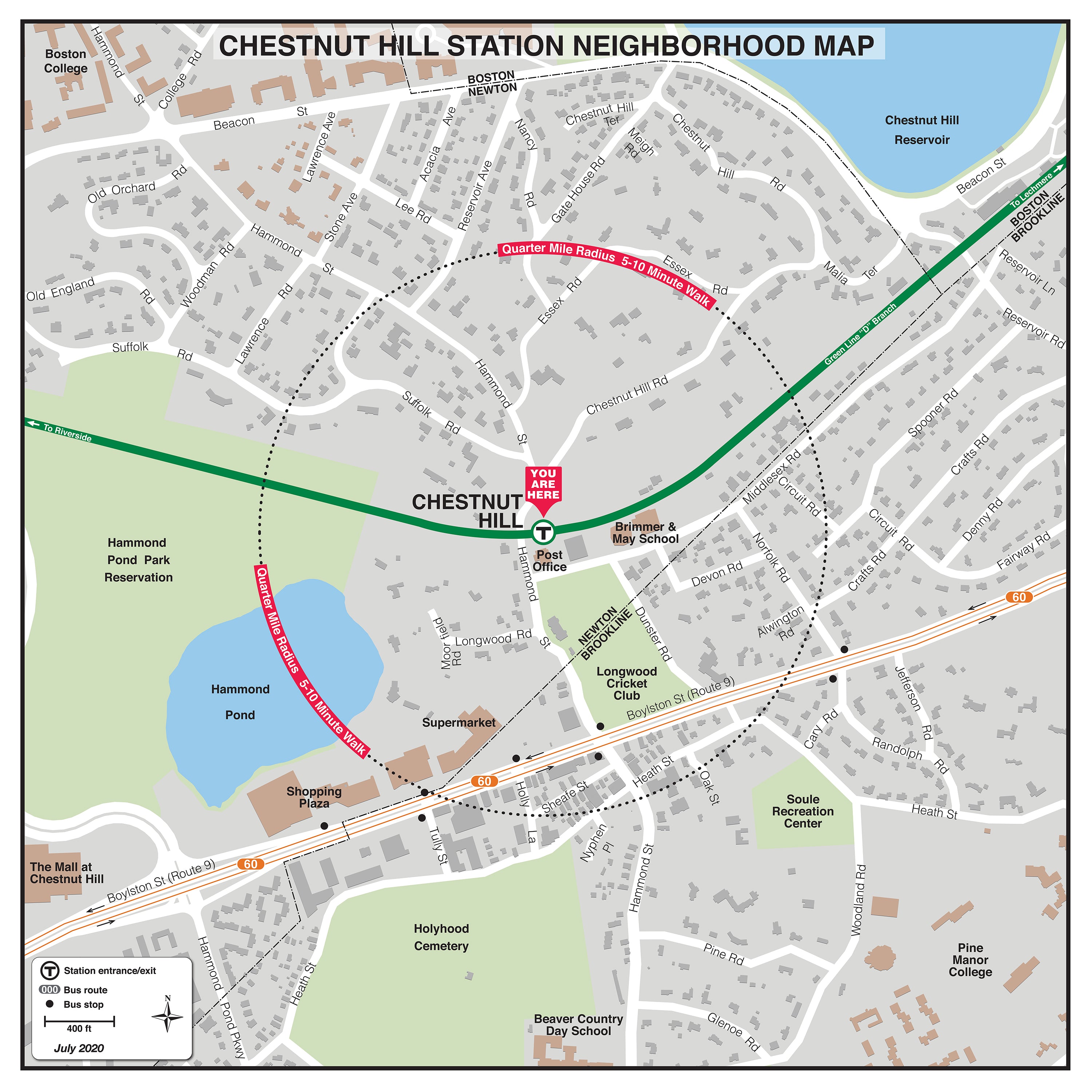 MBTA Chestnut Hill Station Neighborhood Map (July 2020) – MBTAgifts