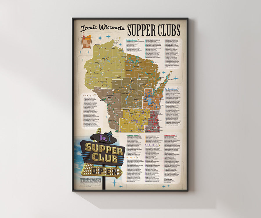 Wisconsin Supper Club Map Poster – KEWAUNEE, WI (WFRV) – Wisconsinites have reason to celebrate August 31st since 2017 when then-Governor Scott Walker declared it “Supper Club Day” in the state. . Asking a Wisconsin native their definition of a supper club is a lot like asking them where “up north” begins–it’s different for everyone! But according to Wisconsin Cheese, “supper club culture” is .